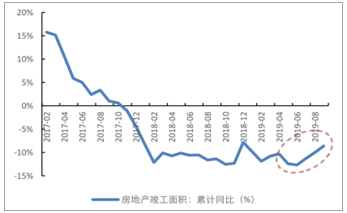 2017-2019.8房地產竣工面積累計同比