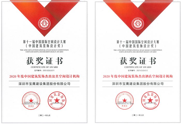 日前,第十一屆中國國際空間設(shè)計大賽在深圳落下帷幕,通過組委會專家的層層嚴(yán)格篩選與評審,寶鷹集團(tuán)憑借強大的設(shè)計綜合實力獲評“2020年度中國建筑裝飾杰出公共空間設(shè)計機構(gòu)”和“2020年度中國建筑裝飾杰出酒店空間設(shè)計機構(gòu)”,寶鷹設(shè)計研究院設(shè)計作品獲二金二銀二銅。