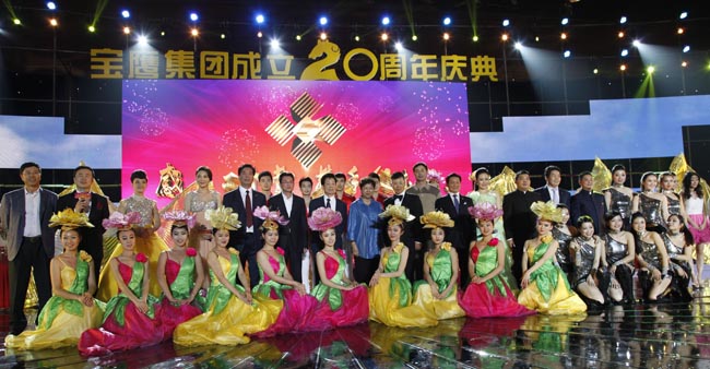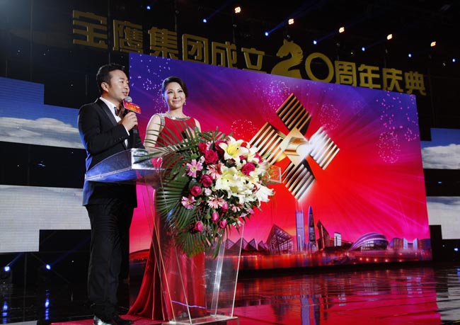 慶典活動由廣東衛視著名節目主持人王鵬、李佳聯袂主持,以古少明主席親筆題寫“感恩二十載,攜手創未來”的晚會活動主題為開篇。慶典儀式上,古少明主席發表了熱情洋溢、充滿正能量的講話,對參加慶典活動的各位領導和嘉賓表示了熱烈的歡迎,對創業領路人及長期以來關心、支持寶鷹事業發展的各級領導和社會各界人士表示了誠摯的謝意,他還回顧了寶鷹集團由一個名不見經傳的小公司發展到2013年年底成功上市并于近期布局移動互聯網電商的征程,同時闡述了今后20年“寶鷹夢”的內涵,即“要繼續圍繞實現中國夢的戰略發展黃金機遇,在繼續強化建筑裝飾業務主體的基礎上,實現寶鷹多元化、國際化的戰略構想”。集團領導古少波、成湘文也分別上臺致辭,全面回顧了寶鷹集團自1994年成立以來的發展歷程,系統總結了過去20年的付出、收獲和經驗,明確指出了今后一個時期的發展戰略和發展方針,號召全體員工萬眾一心、眾志成城為實現美麗的“寶鷹夢”以及更偉大的“中國夢”而努力奮斗。