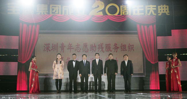 為了響應習近平總書記、共青團中央、中殘聯號召開展的青年志愿助殘“陽光行動”,寶鷹集團董事局古少明主席決定投入資金500萬元,分五年投入,以義工聯為平臺在深圳創辦首家專門開展志愿助殘的民辦非營利性組織。慶典活動中,董事局主席古少明、共青團廣東省委副書記陳宏宇、全國青聯常委王宏偉、共青團南山區委書記劉菲菲、共青團龍崗區委書記郭躍華、廣東省青聯常委古少揚為“深圳市青年志愿助殘服務組織籌備工作啟動”揭牌。度過了一個實現寶鷹集團“大道當然,感恩回饋”的難忘今宵。
