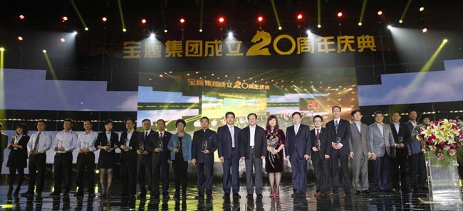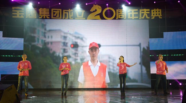 慶典會上,集團還對20年來為寶鷹發展付出青春熱血的“10年以上資深員工”、“突出貢獻者”、“創業者”進行了表彰,并頒發榮譽獎杯。獲獎代表都發表了真摯的感言,讓晚會成為一個勵志的晚會、感動的晚會。
