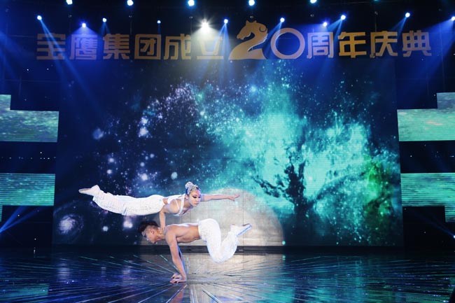 活動過程中,集團黨支部、團委、工會組織策劃,由集團員工、深圳市龍崗區夢想義工藝術團以及寶鷹人的好朋友馮鞏、王宏偉、雷佳、溫翠娜等聯袂奉獻了一臺精彩紛呈的文藝晚會。晚會中,歌曲、舞蹈、器樂演奏、小品等藝術形式紛紛登臺,藝術家們更是展示絕技,共同謳歌了寶鷹集團成立20年以來的成長,展現了寶鷹人“感恩、團結、務實、奮斗、卓越”的良好精神風貌。
