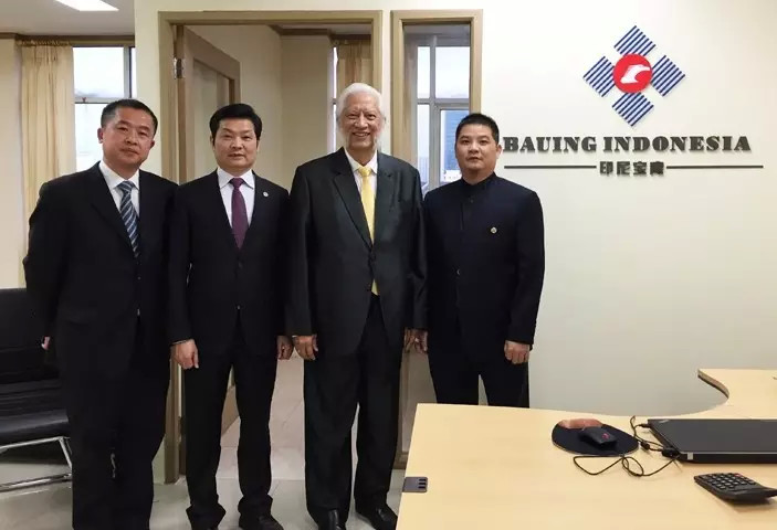 印尼熊氏集團董事長熊德龍(左三)、寶鷹集團董事局主席古少明(左二)、副總裁古樸(右一)和印尼寶鷹總經理陶武銘(左一)在印尼寶鷹辦公室