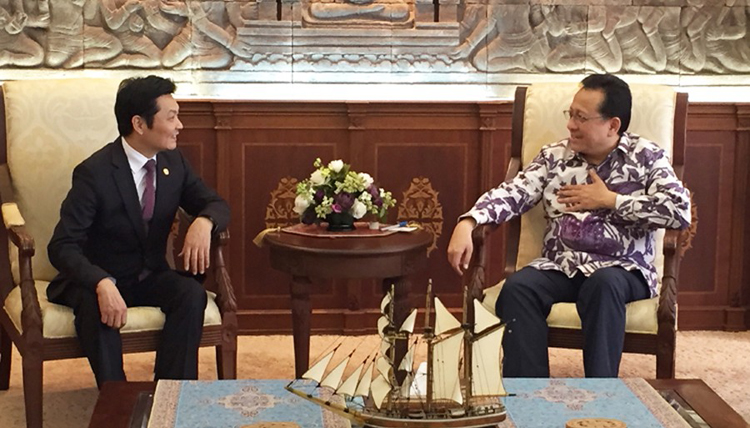 古少明主席與印尼地方代表理事會主席伊爾曼·古斯曼在印尼國會進行會談