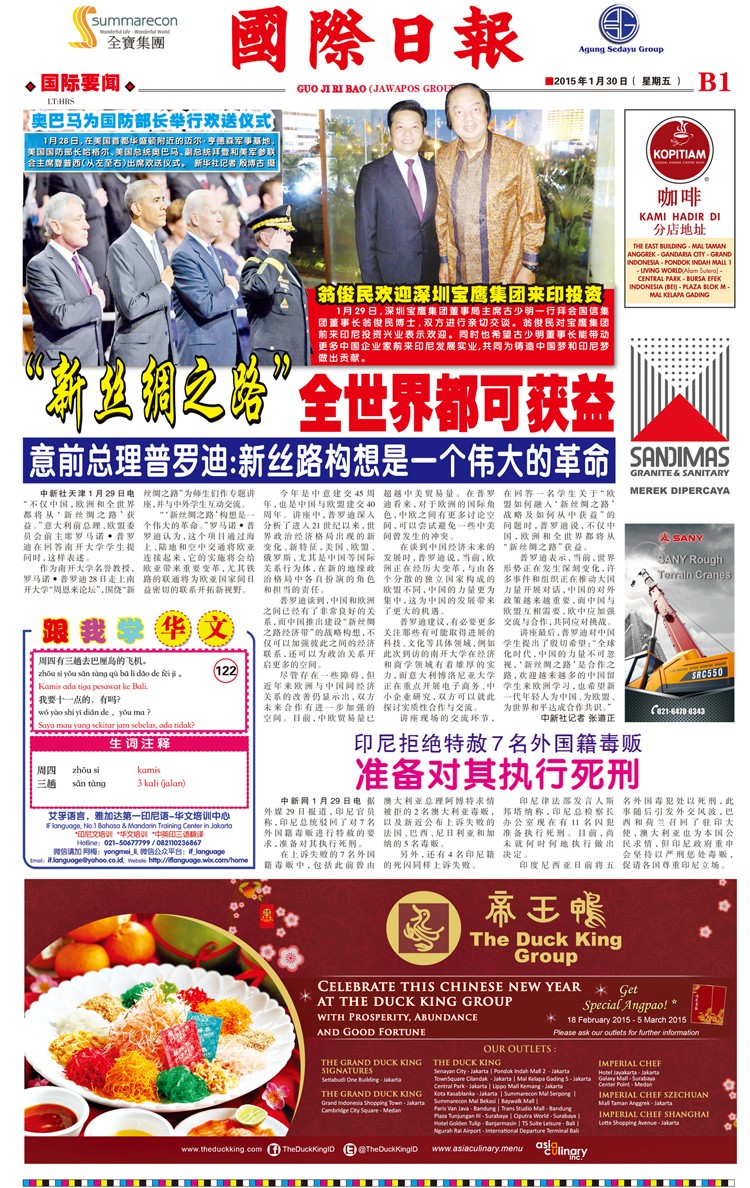 印尼《國際日報》刊載古少明主席一行拜訪國信集團董事長翁俊民博士